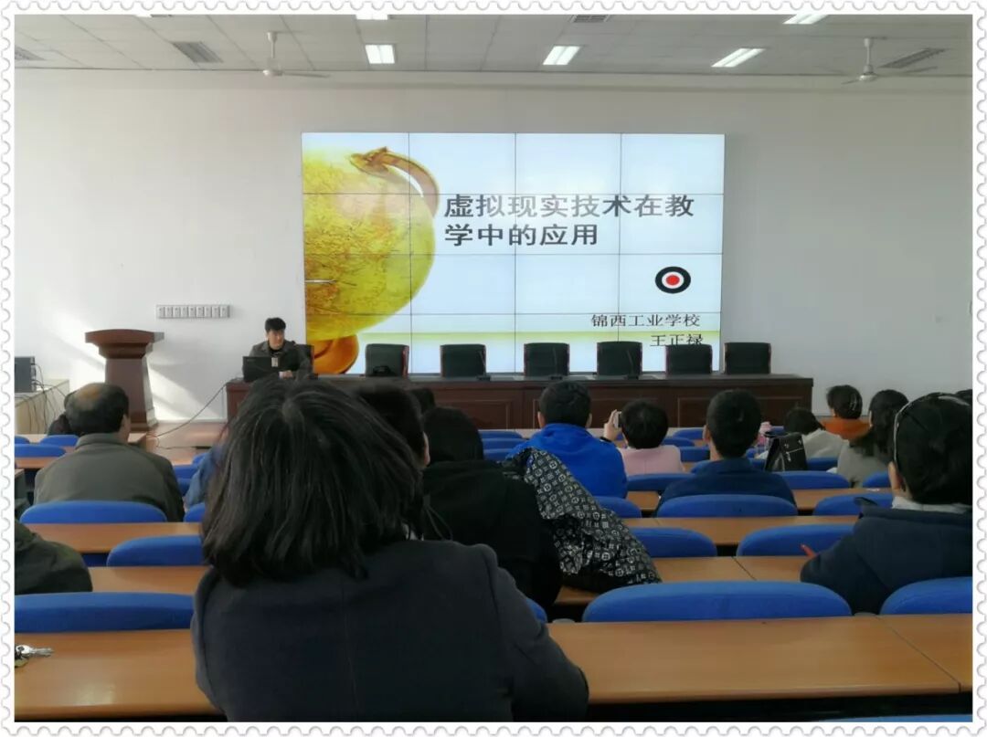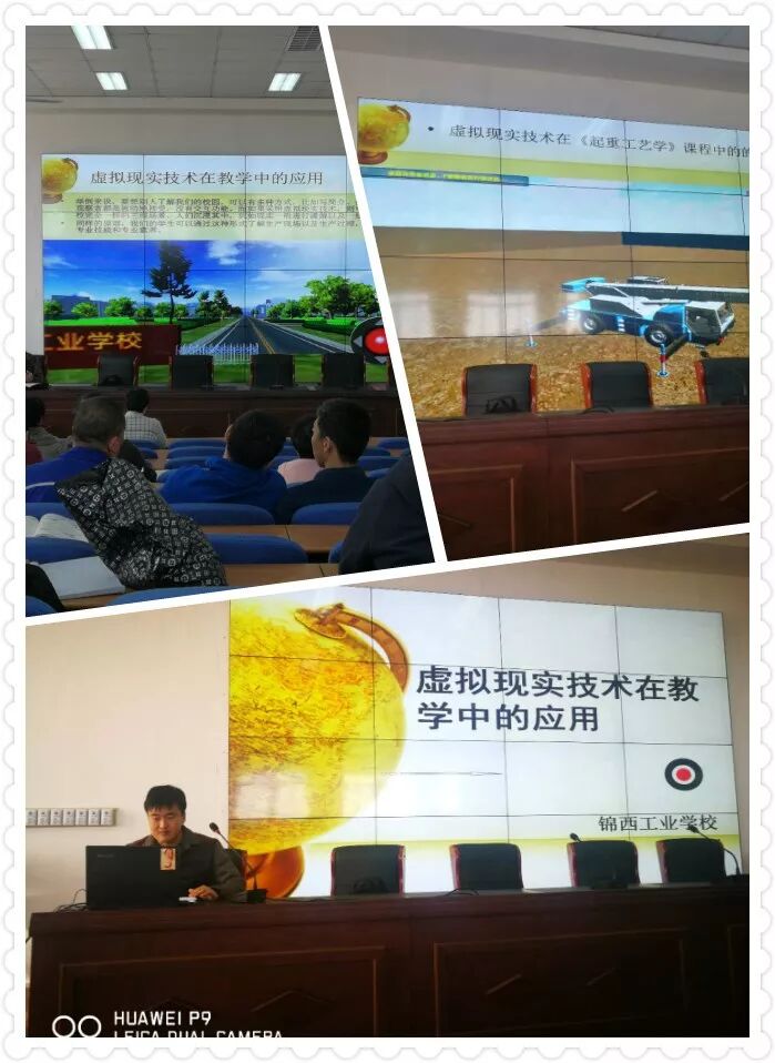 在汇报讲座上,王正禄老师由学生目前的学习状态及如何改善入手,介绍了虚拟现实技术及其应用。他向老师们展示了他用虚拟现实技术建构的我校校园三维场景,让大家眼前一亮,并为之赞叹。他还重点结合船舶制造与修理专业以及他目前所讲授的专业课《起重工艺学》,讲述了虚拟现实技术可以让其理实一体化教学更加生动、形象、有趣,能够激发学生学习兴趣,进而提高教学效果。最后,他用“实践出真知”结束了他的分享。