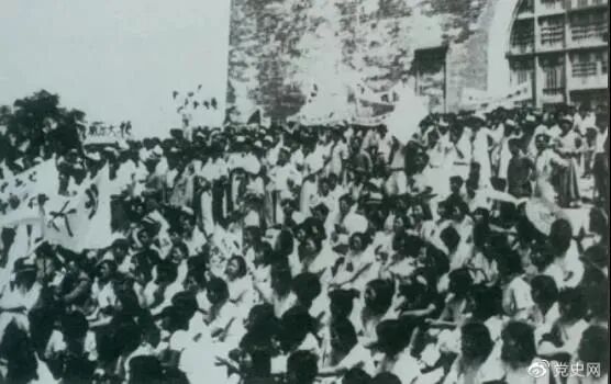 1936年6月13日,北平学生与市民在鼓楼前举行声势浩大的抗日集会。