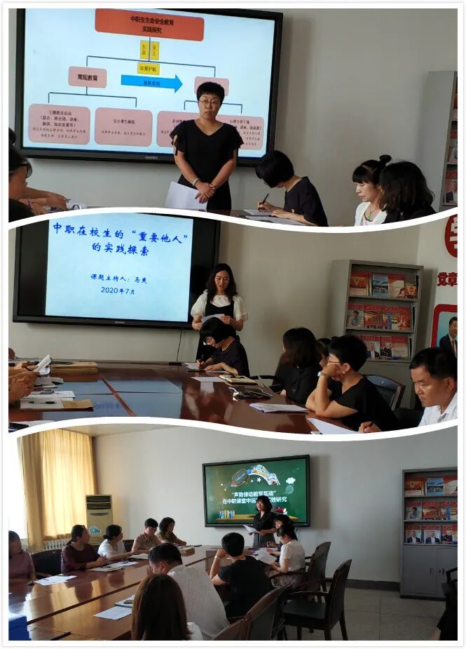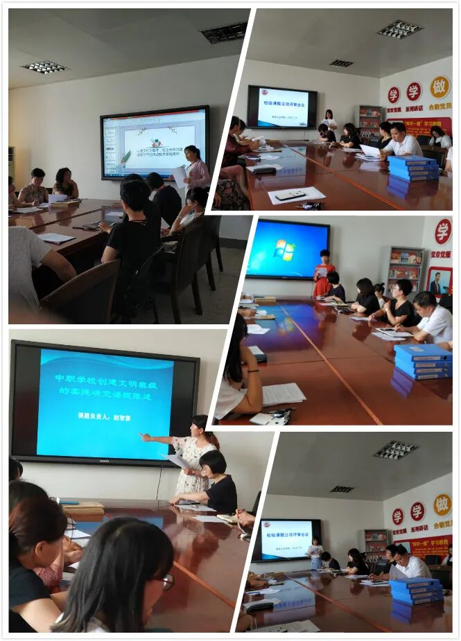 会议由教研室主任黄英主持,首先她介绍了校级课题申报情况。然后8位课题主持人就课题的研究意义、目标、内容、成果及创新之处等做了陈述。之后,课题主持人进行了答辩,副校长孟笑红和教研室主任黄英对8个课题分别给予了评议并提出了建议,其他评审组成员对个别课题提出了建议。校长杨剑波做了讲话,对教师申报课题的积极性给予了高度肯定,希望多开展接地气的课题研究,能够切实解决实际教育教学问题,引导学生学会做人,学有所成。最后评审小组进行了综合评议,其中《生命至上,双翼护航——中职生生命安全教育探究》《中职在校生的“重要他人”的实践探索》《“声势律动教学互动”在中职课堂中运用的实效研究》等6项课题顺利通过,对其他两项课题提出了修改完善建议。
